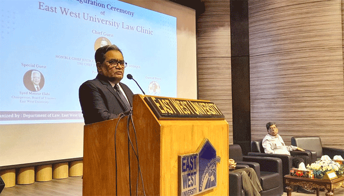 শনিবার ইস্ট ওয়েস্ট ইউনিভার্সিটির মঞ্জুর এলাহী মিলনায়তনে ল’ ক্লিনিকের উদ্বোধন অনুষ্ঠানে প্রধান বিচারপতি এসব কথা বলেন। দেশের কোনো বিশ্ববিদ্যালয় এই প্রথম ল ক্লিনিক চালু করা হয়েছে। যেখানে শিক্ষার্থীদের আইন অনুশীলনের সার্বিক দিকগুলো চর্চার সুযোগ থাকবে।
