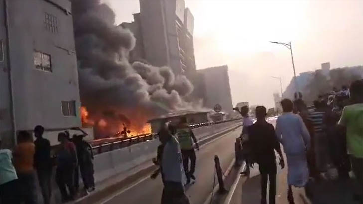 এ বিষয়ে জানতে চাইলে শনিবার রাতে ডিএমপির অতিরিক্ত কমিশনার ও ডিবি প্রধান মোহাম্মদ হারুন অর রশীদ বলেন, মোটরসাইকেল আরোহী যে দুই যুবকের ভিডিও ভাইরাল হয়েছে, ইতোমধ্যে তাদের চিহ্নিত করেছি। তাদের গ্রেফতারে বিভিন্ন জায়গায় অভিযান চলছে। আশা করছি, শিগগিরই তাদের আইনের আওতায় আনতে পারব। এই অগ্নিকাণ্ডের সঙ্গে প্রাথমিকভাবে বিএনপি ও জামায়াতের কিছুটা সংশ্লিষ্টতা পেয়েছি। এটা নিছক দুর্ঘটনা নয়, নাশকতা বলেই প্রাথমিকভাবে মনে হচ্ছে। এখন মোস্ট ওয়ান্টেট দুই যুবককে গ্রেফতার করতে পারলেই পুরো বিষয়টি পরিষ্কার হবে।