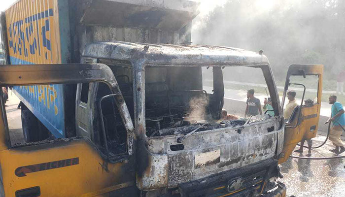 রাজধানীতে বাসে আগুন