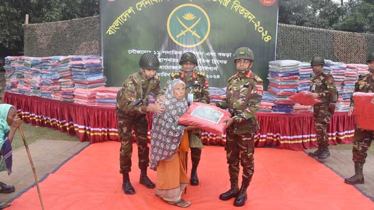 মঙ্গলবার ১১ পদাতিক ডিভিশনের ২৬ পদাতিক ব্রিগেডের অধীনে ৭ ইস্ট বেঙ্গল রেজিমেন্ট শীতার্ত মানুষের মাঝে ৪০০ কম্বল বিতরণ করে।