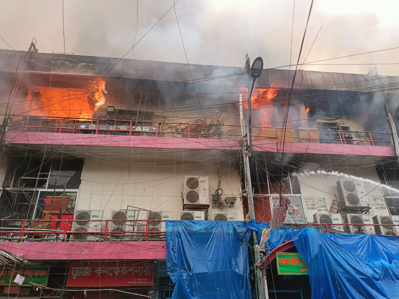ডিএমপির রমনা বিভাগের উপকমিশনার জয়নুল আবেদীন গণমাধ্যমকে বলেন, ফায়ার সার্ভিস বাইরে থেকে পানি আনছে। এজন্য রাস্তা পরিস্কার রাখতে হচ্ছে। তারা বললেই রাস্তা খুলে দেওয়া হবে।