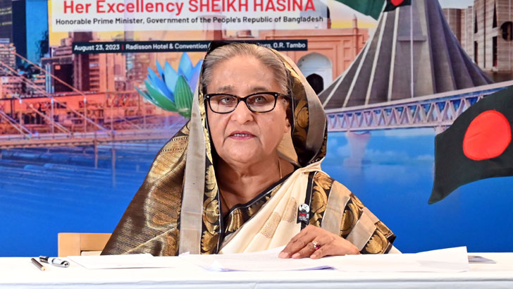 প্রধানমন্ত্রী দক্ষিণ আফ্রিকার জোহানেসবার্গের স্যান্ডটন কনভেনশন সেন্টারে বৃহস্পতিবার ৭০টি দেশের প্রতিনিধিদের নিয়ে ফ্রেন্ডস অব ব্রিকস লিডারস ডায়ালগ (ব্রিকস-আফ্রিকা আউটরিচ অ্যান্ড দ্য ব্রিকস প্লাস ডায়ালগ) ‘নিউ ডেভেলপমেন্ট ব্যাংক অব ব্রিকস’-এর সদস্য হিসাবে বাংলাদেশের পক্ষে ভাষণে এসব কথা বলেন। দক্ষিণ আফ্রিকার প্রেসিডেন্ট সিরিল রামাফোসাও এ সংলাপে বক্তব্য দেন।