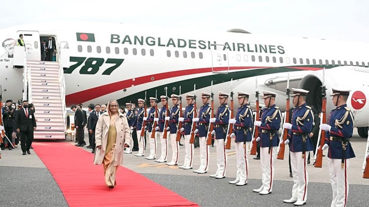 এর আগে জাপান, যুক্তরাষ্ট্র ও যুক্তরাজ্যে ১৫ দিনের সরকারি সফরের প্রথম পর্যায়ে টোকিও’র উদ্দেশে আজ সকাল ৭টা ৫৬ মিনিটে বিমানটি ঢাকার হযরত শাহজালাল আন্তর্জাতিক বিমানবন্দর ত্যাগ করে।