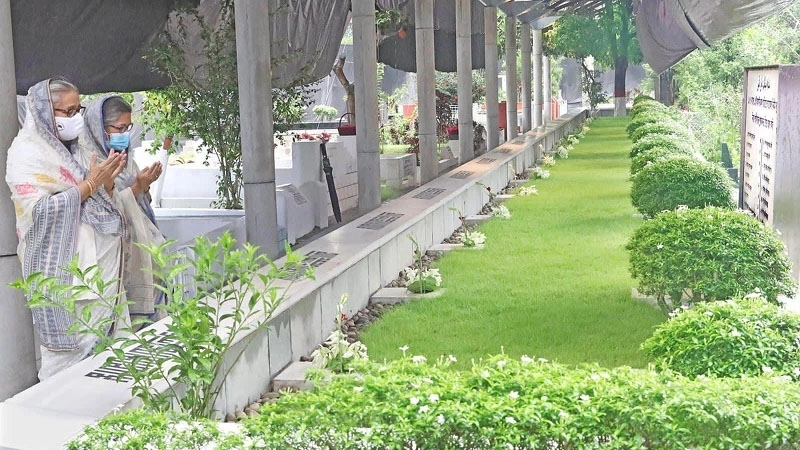 প্রধানমন্ত্রী শেখ হাসিনা রাজধানীর বনানী গোরস্থানে ১৫ আগষ্টের শহীদদের কবরে শ্রদ্ধা নিবেদন করেছেন। রবিবার সকালে তার ছোট বোন শেখ রেহানাকে নিয়ে বনানী কবরস্থানে যান প্রধানমন্ত্রী এবং শহীদদের কবরে পুস্পস্তবক অর্পণ করেন তিনি।