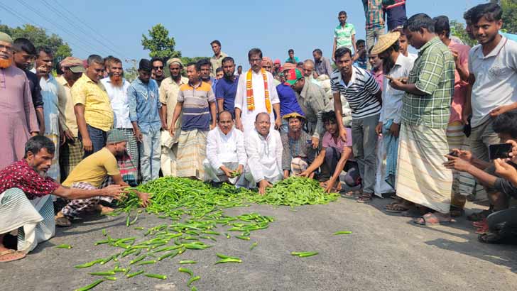 মহাসড়কে সবজি ঢেলে হরতাল-অবরোধের প্রতিবাদ