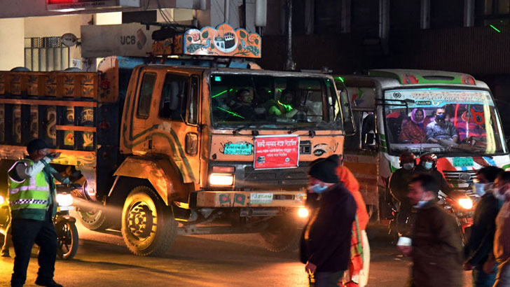 পথে পথে লেজারের আলোর ইশারা। কোথাও পুলিশ, কোথাও আগ্রাসী যুবকের দল। ইশারার সঙ্গে সঙ্গে গাড়ি থেকে না নামলেই শুরু হয় হুমকি-ধমকি। ট্রাক আটকিয়ে নামানো হয় হেলপারকে। ধরিয়ে দেওয়া হয় চাঁদার রসিদ। ইজারাদার, পরিবহণ কোম্পানি ও বিভিন্ন সমিতির নামে ছাপানো এসব রসিদে লেখা থাকে টাকার পরিমাণ। এরপর টাকা দেওয়ার পালা। টাকা দিলেই চাকা ঘোরানোর অনুমতি মেলে। সবজির ট্রাকে হেলপার সেজে বগুড়ার মহাস্থানগড় থেকে ঢাকার কাওরান বাজারে আসতে প্রতিবেদকের সামনে অন্তত সাতটি স্পটে চাঁদাবাজির এমন সব চিত্র ধরা পড়ে।